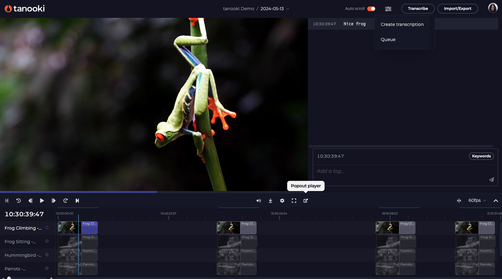 Pop out the player into a 2nd screen if you require more screen estate for logging/notes.