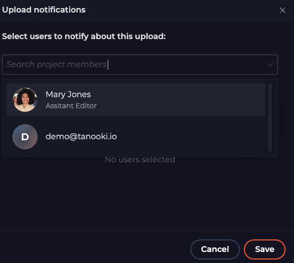 Once switched on, the uploader can choose who they would like to send notifications to in Edit Notifications..