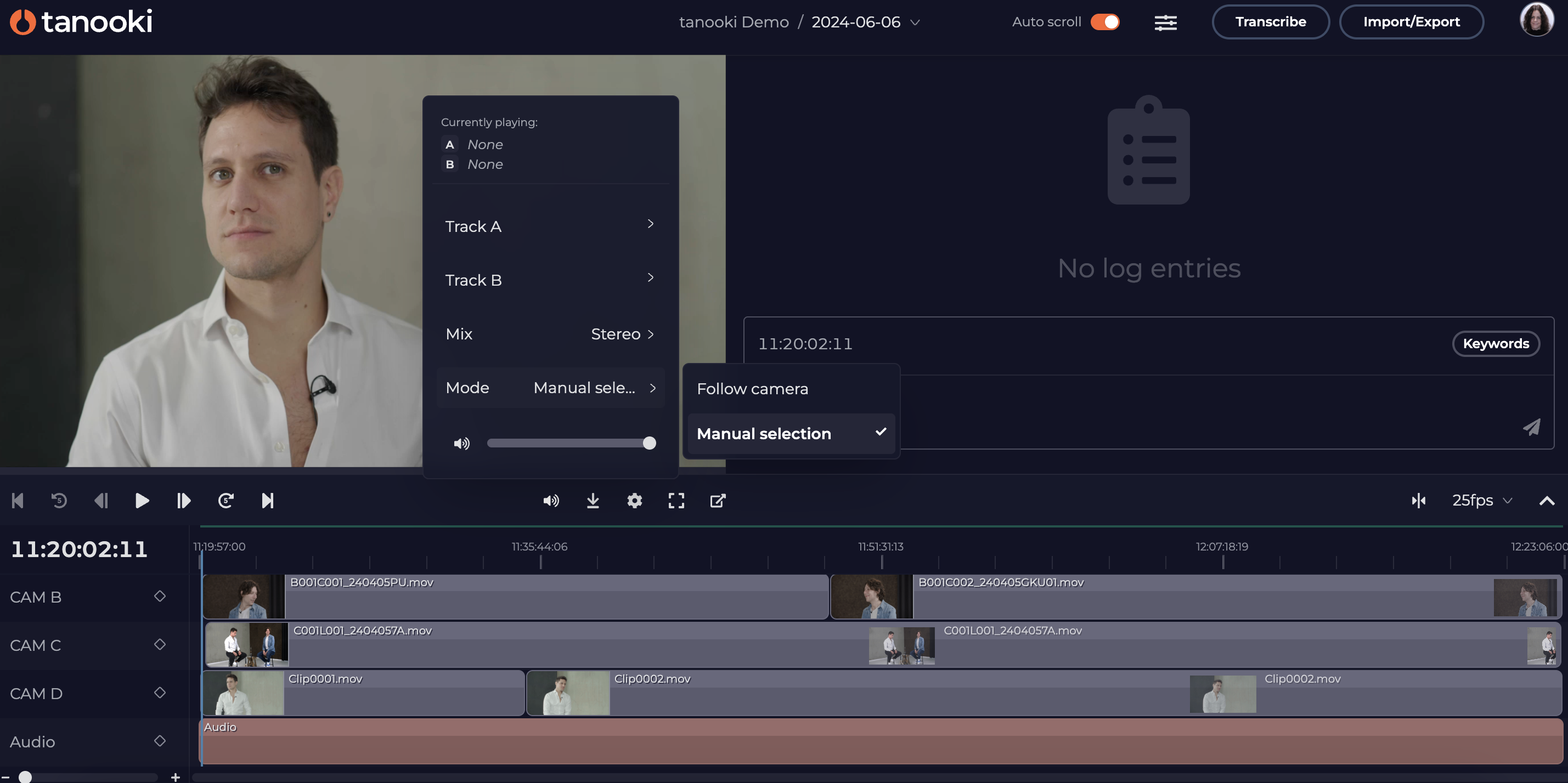 By default, tanooki plays audio from the active camera — this is called Follow Camera.